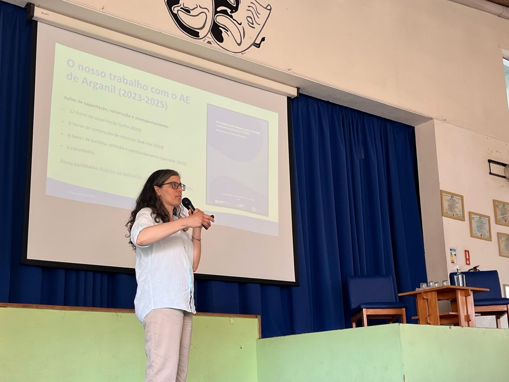 Um dos pontos altos foi a apresentação da publicação Estratégias para a Inclusão Curricular de Alunos de PLNM, com exemplos concretos de práticas coconstruídas com docentes do agrupamento. A sessão terminou com a oferta de livros bilingues e obras sobre migrações, e com a intervenção de Rogério Neves, que reforçou o compromisso do agrupamento com uma escola mais inclusiva e centrada na diversidade.