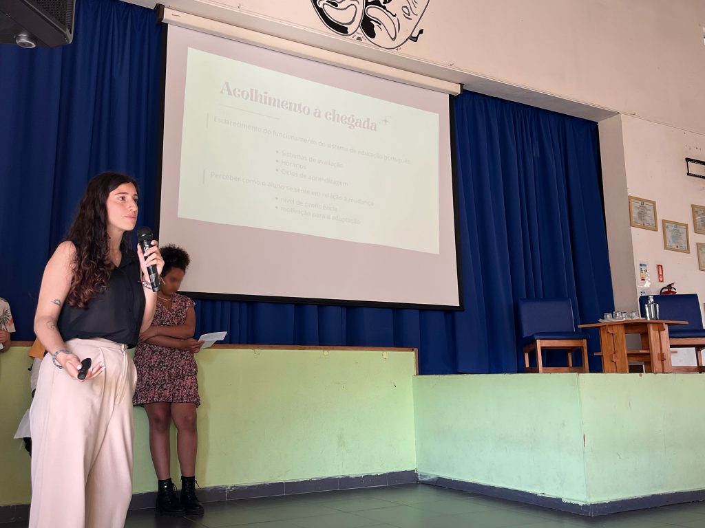 Foram apresentadas práticas pedagógicas inclusivas adotadas por docentes de várias disciplinas, como Ciências e História da Cultura e das Artes, destacando estratégias de adaptação linguística e valorização da diversidade cultural e linguística. Sublinhou-se também o papel essencial dos mediadores na comunicação entre escola, alunos e famílias.