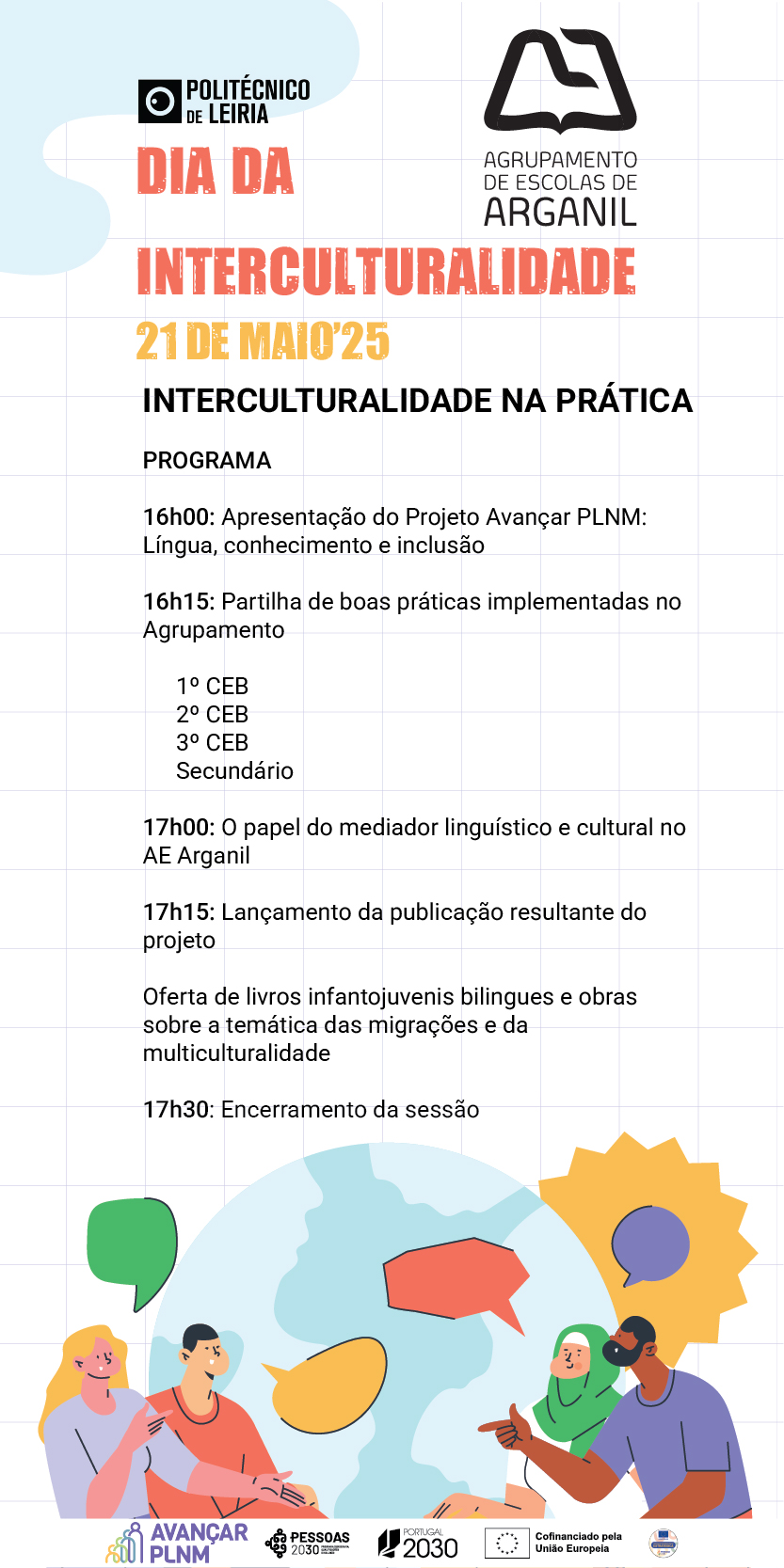 O encontro assinalou o encerramento do trabalho desenvolvido no ano letivo 2023/2024 no âmbito do programa Avançar PLNM: Língua, Conhecimento e Inclusão. Foi dinamizado por Marta Alexandre, da equipa do programa, e contou com intervenções de Fausto Caels, coordenador, e Anabela Soares, diretora do agrupamento. Pode consultar a programação aqui.